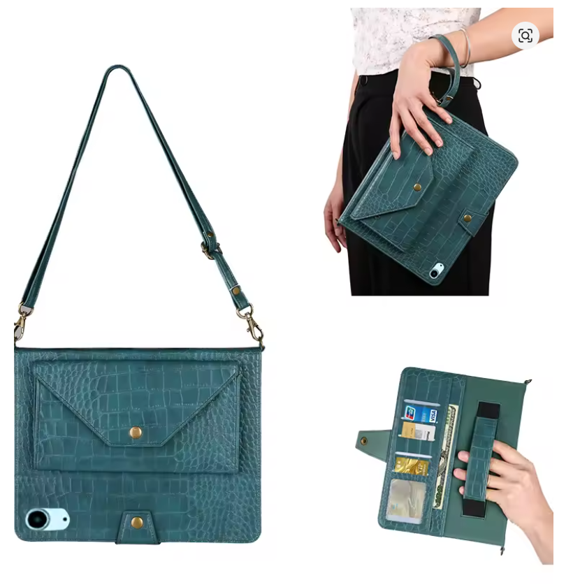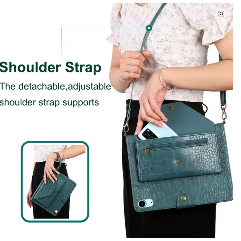 Husa Sigloo iPad 9.7" (iPad Air 1/2, iPad 5/6) – Tip Business din Piele PU, Buzunare pentru Documente, Curea de Umar si Mana – Negru