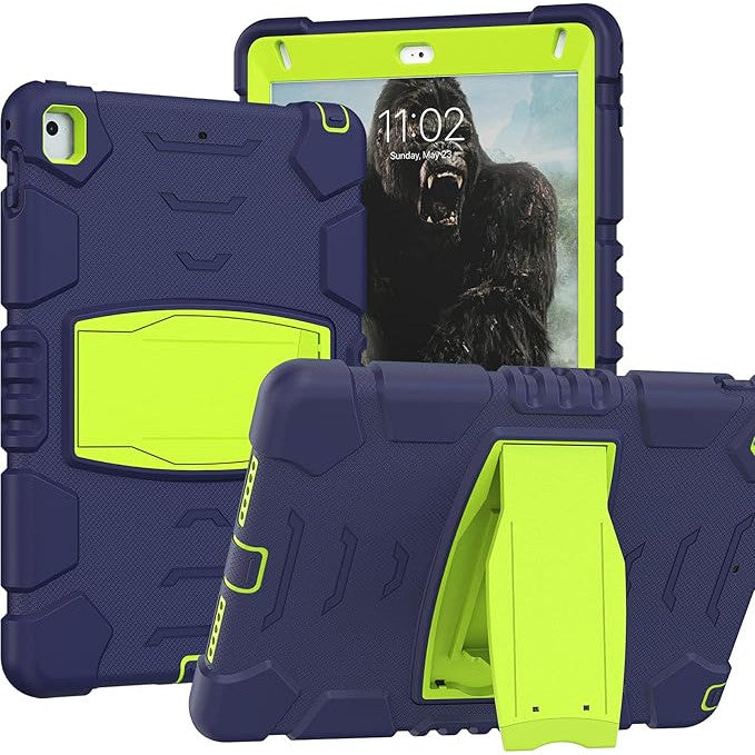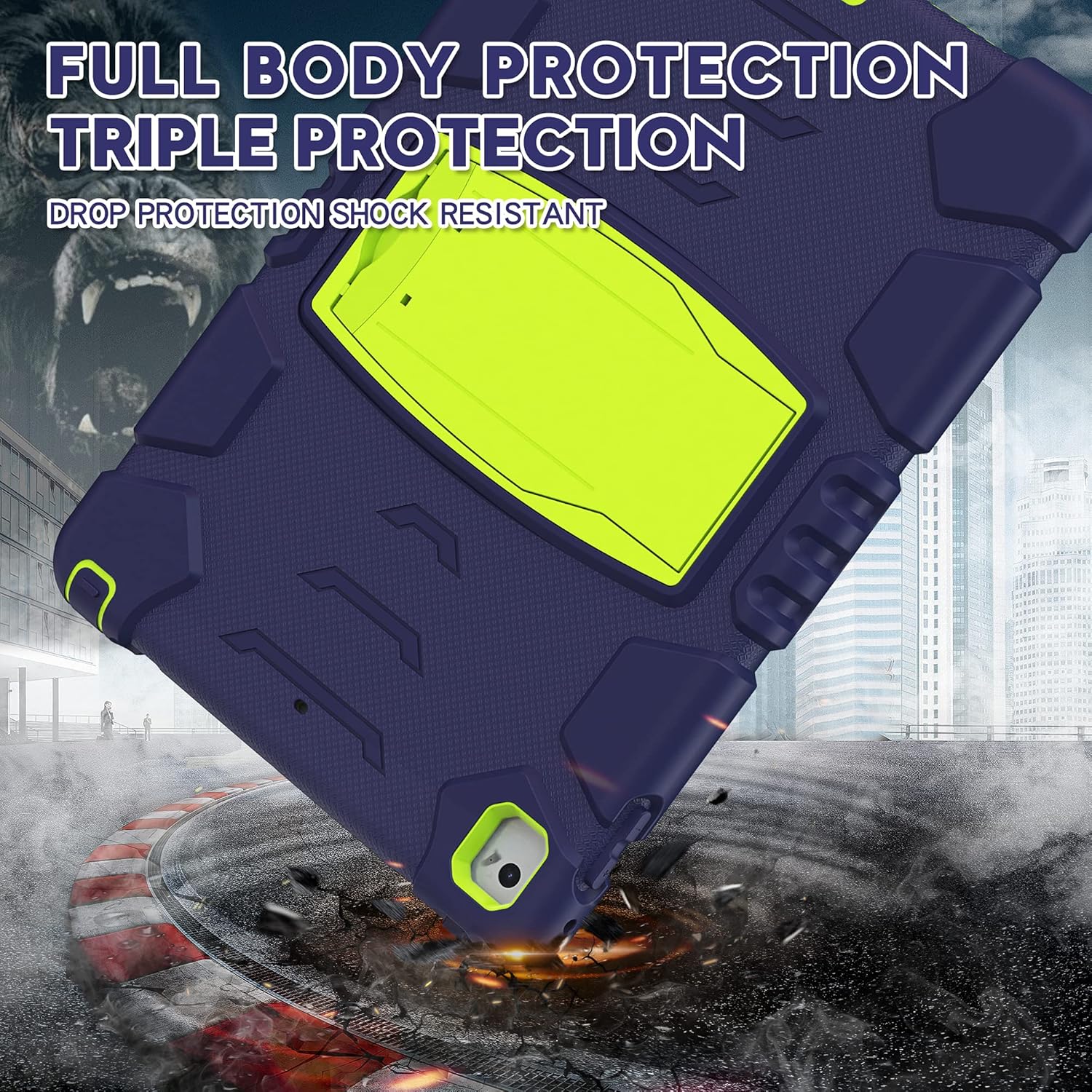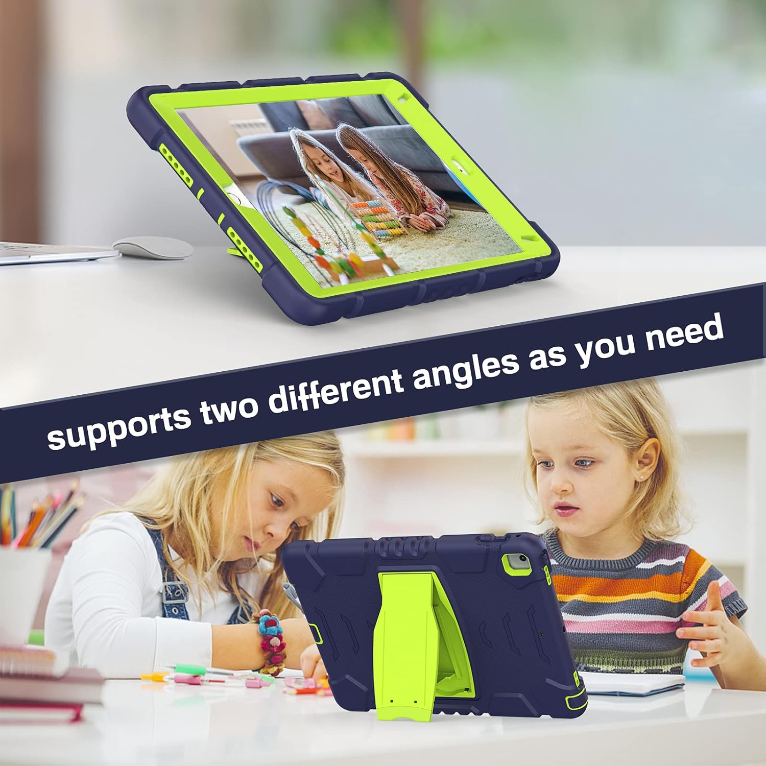 Husa Sigloo pentru iPad 9.7" (iPad 5/6, Air 2, Pro 9.7) – 3 Straturi Protectie, Suport Integrat, Ecran Protejat, Antisoc –Albastru marin cu Verde