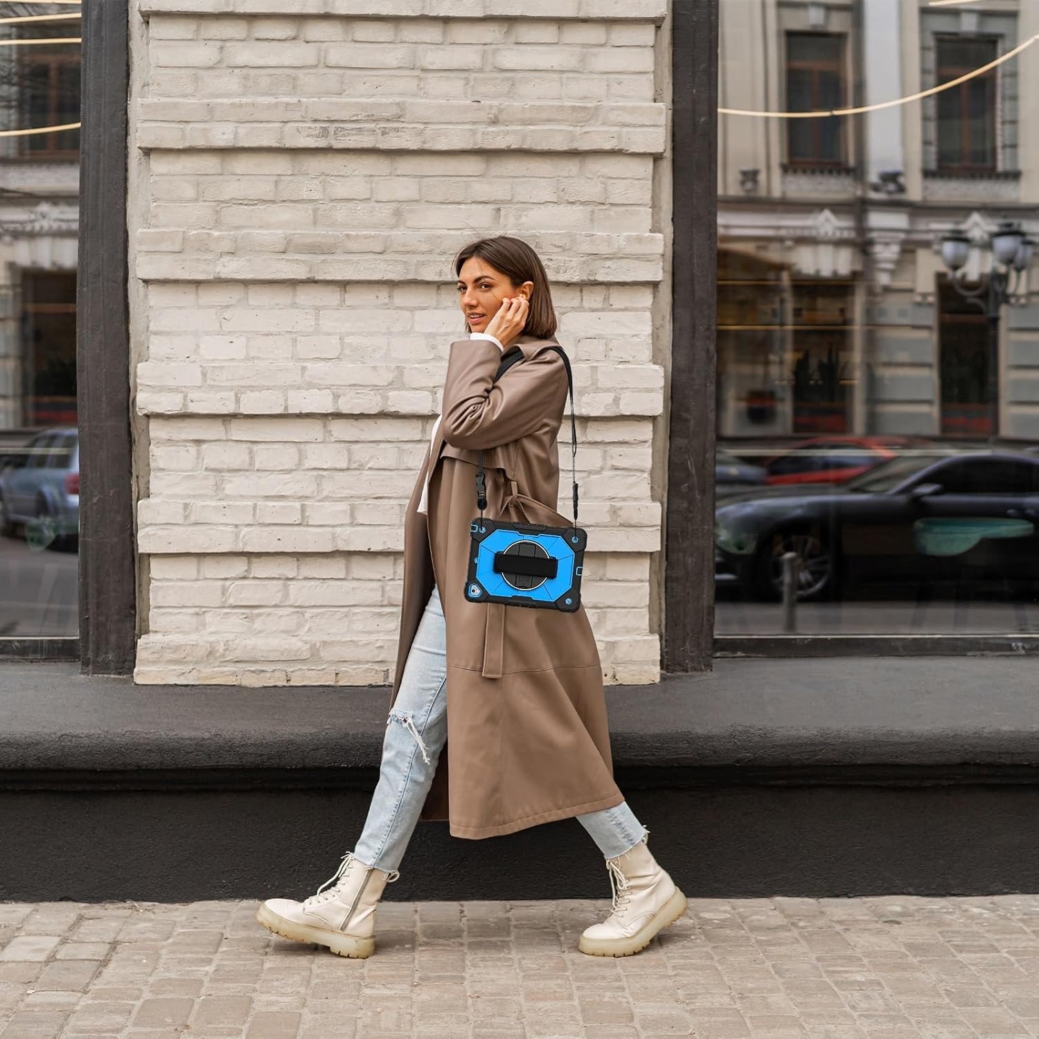 Husa Sigloo 3-in-1 pentru iPad 9.7” / iPad Pro 9.7” (2017/2018) – Protectie Completa, Suport Rotativ, Curea Reglabila, Negru+Albastru