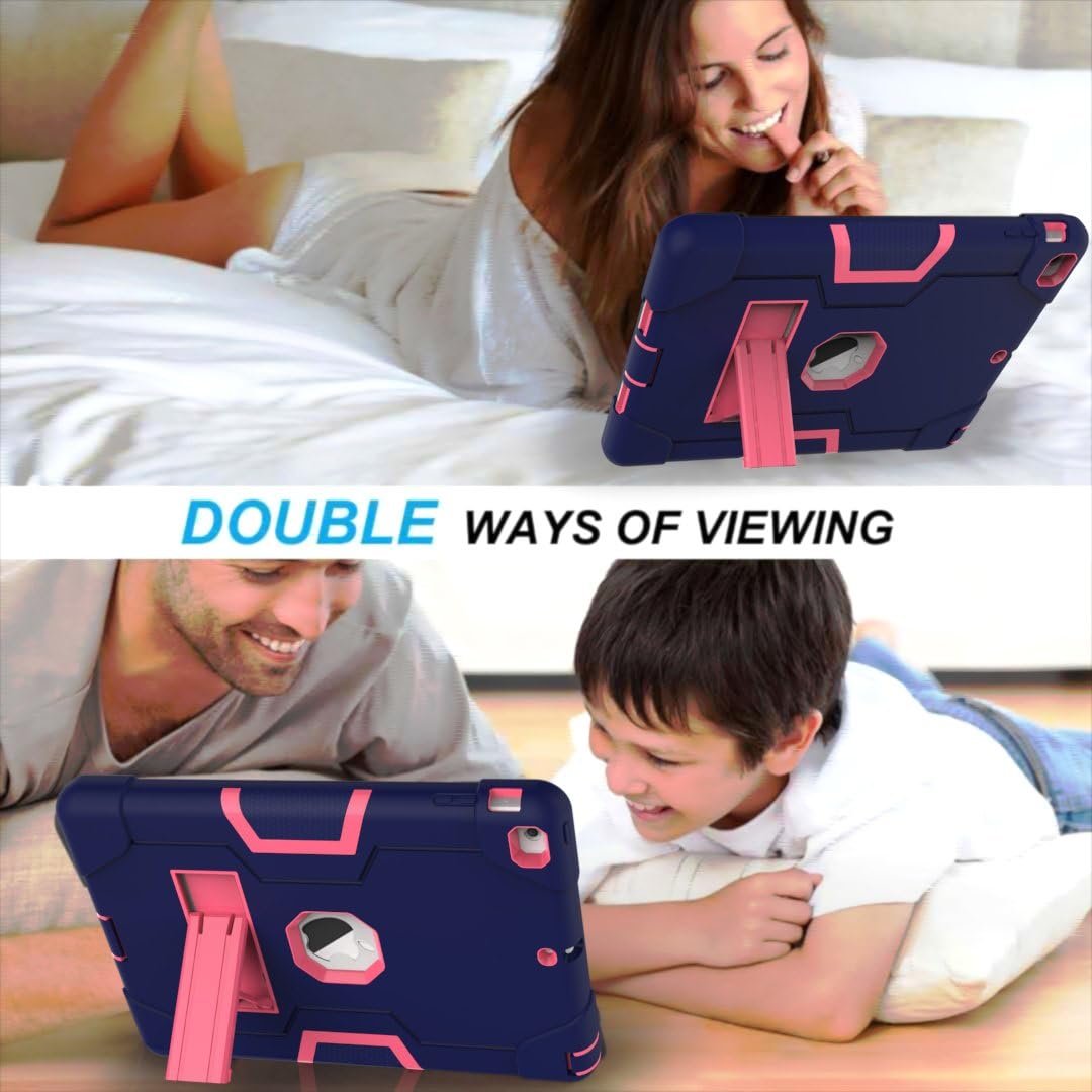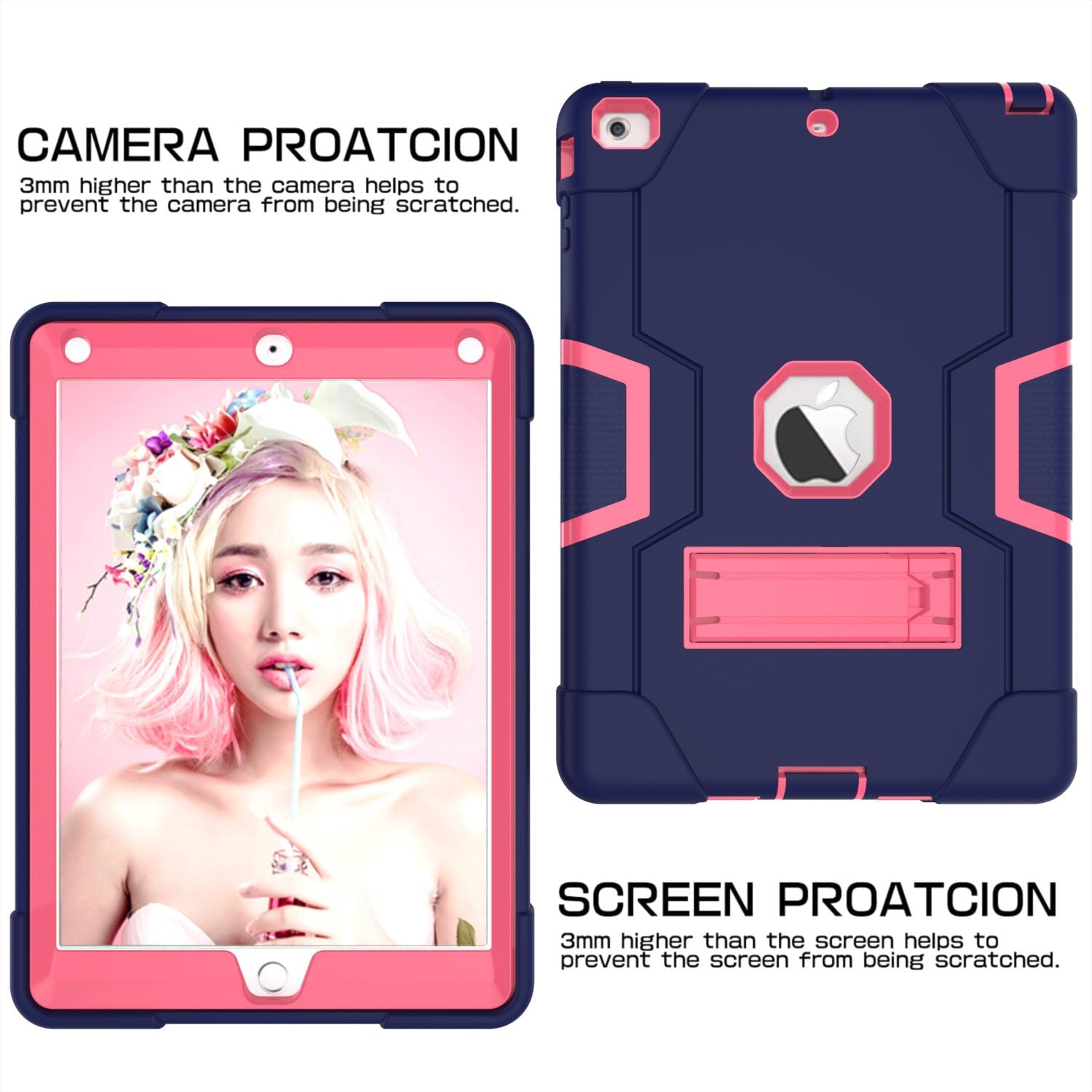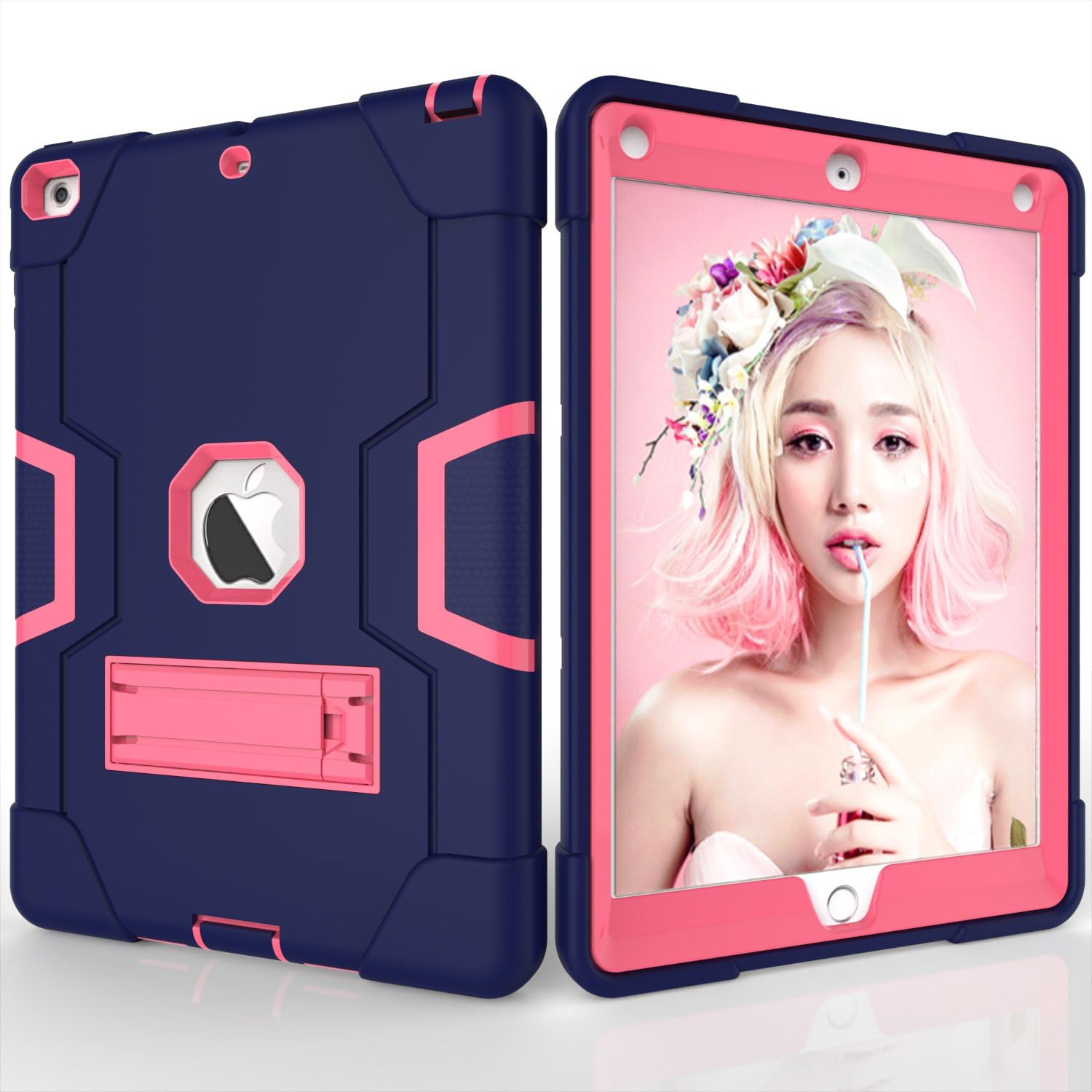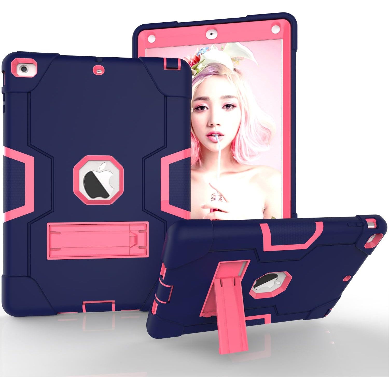 Husa Sigloo pentru iPad Air / iPad 9.7” (2017) – Antisoc si Antizgarieturi cu Suport integrat – Bleumarin + Roz Trandafir