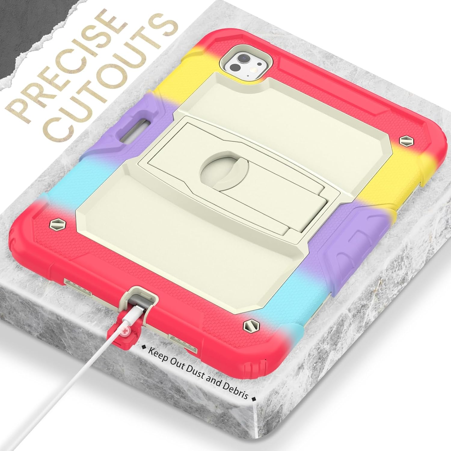 ? Protectie Extrema cu Design 3 Straturi - Fabricata din PC durabil + silicon moale, ofera protectie completa anti-soc, absorbind eficient impactul la colturi. Protejeaza iPad-ul impotriva cazaturilor, zgarieturilor si loviturilor accidentale.