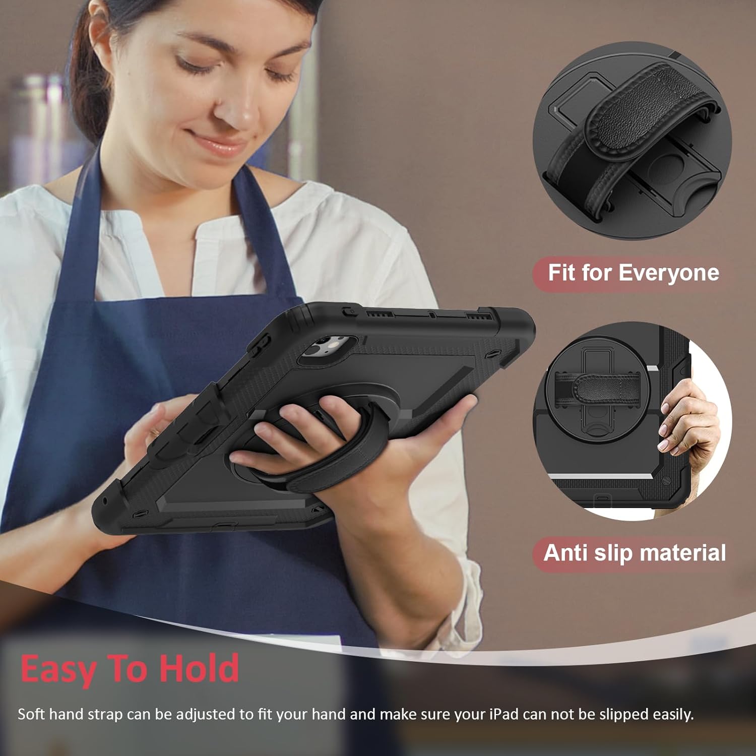 ? Protectie Extrema cu Design 3 Straturi - Fabricata din PC durabil + silicon moale, ofera protectie completa anti-soc, absorbind eficient impactul la colturi. Protejeaza iPad-ul impotriva cazaturilor, zgarieturilor si loviturilor accidentale.