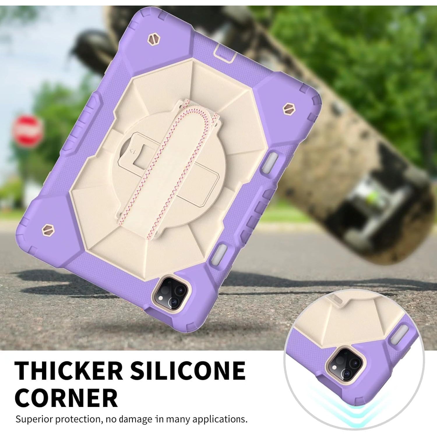 Designul robust in 3 straturi protejeaza eficient tableta impotriva loviturilor, zgarieturilor si prafului. Suportul rotativ 360° si manerul reglabil ofera flexibilitate maxima in utilizare, iar cureaua de umar detasabila este ideala pentru transport in siguranta – fie ca esti in drumetie, la scoala sau intr-o calatorie cu masina.
