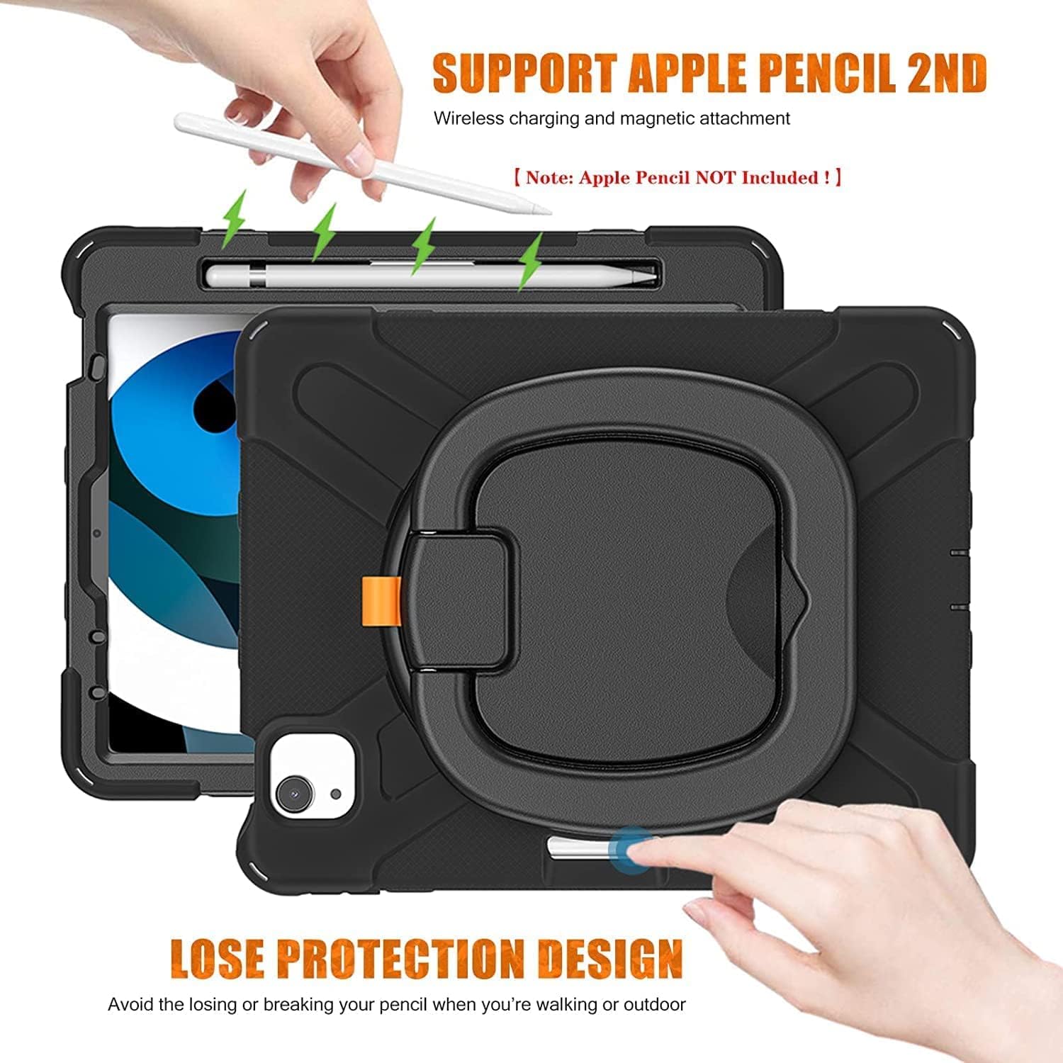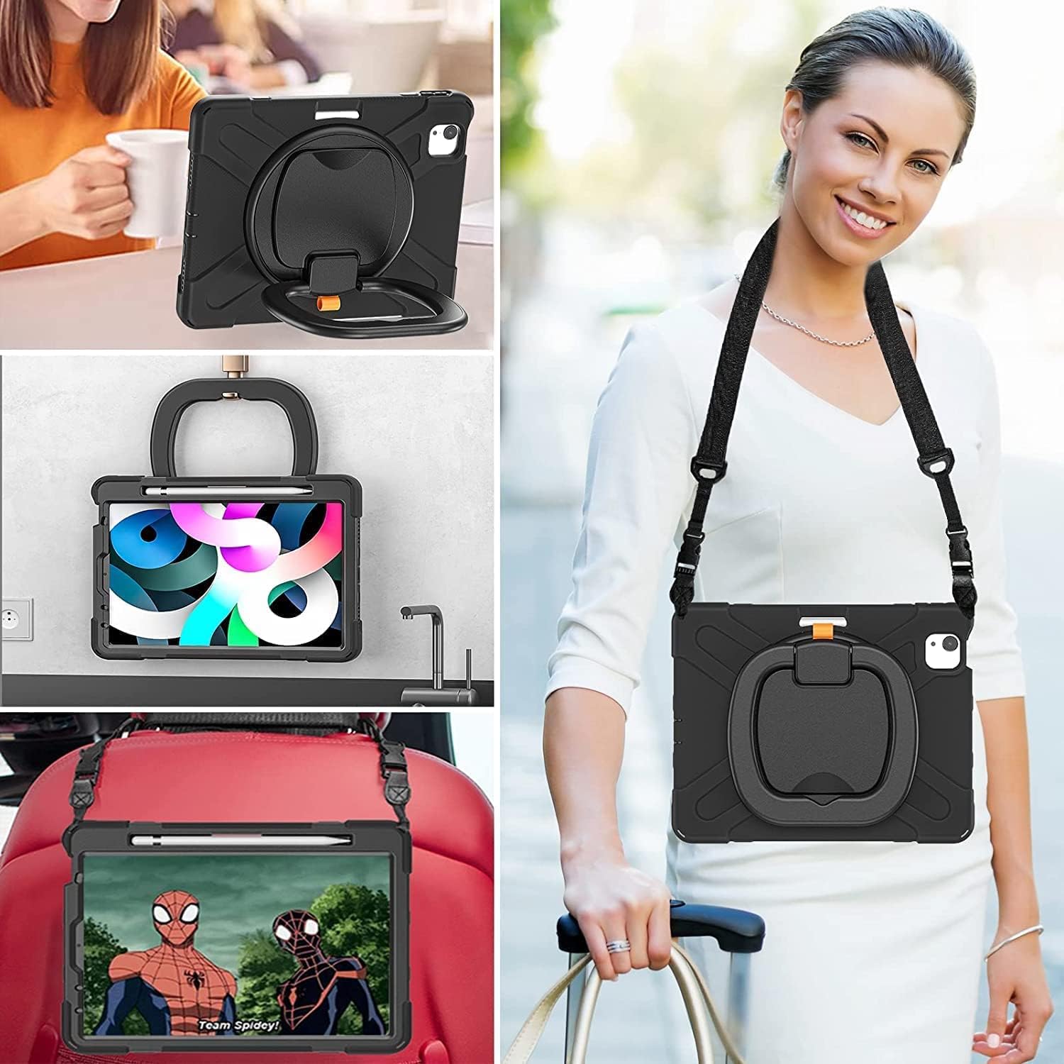 Husa reziztenta pentru iPad Air 10.9" (Gen. 5/4) si iPad Pro 11" (Gen. 1–4), Carcasa rezistenta 3-in-1, Suport 360°, Curea mana, black
