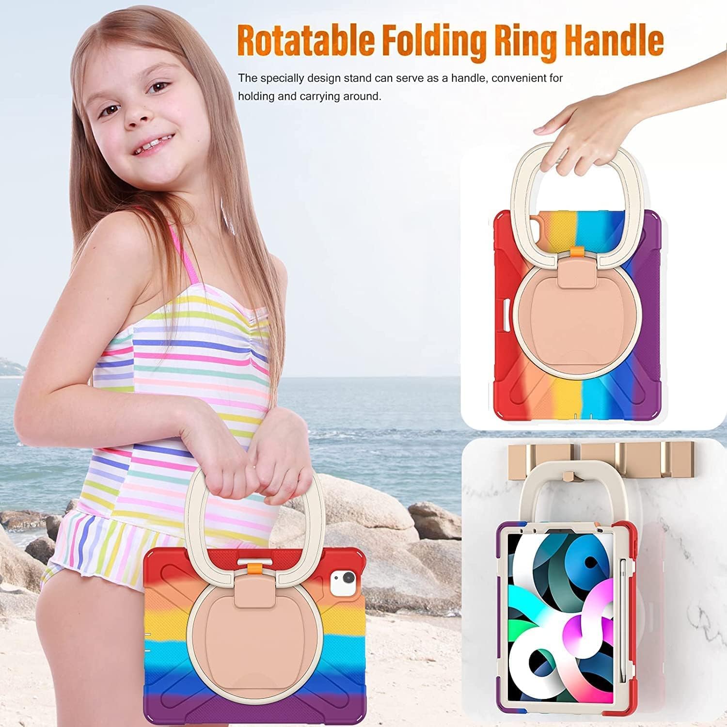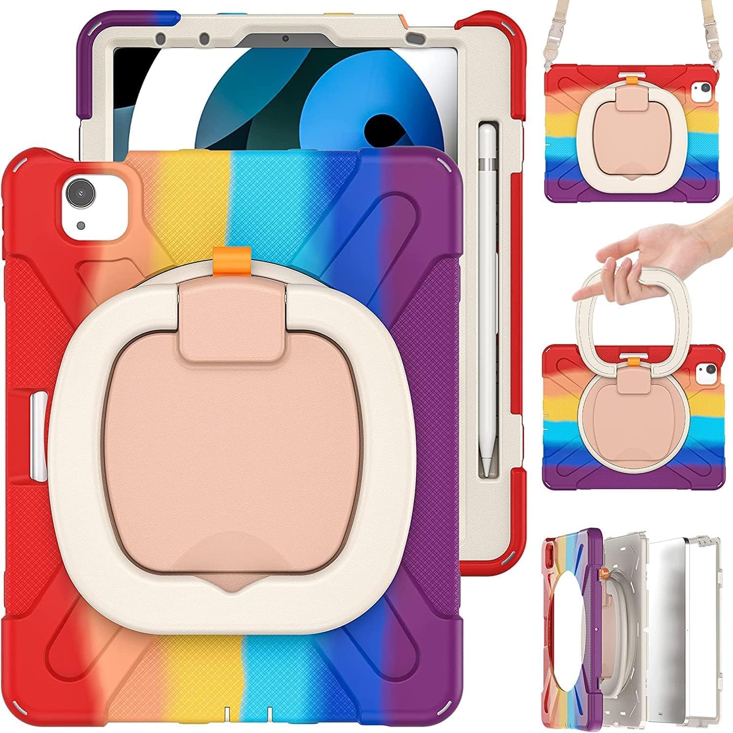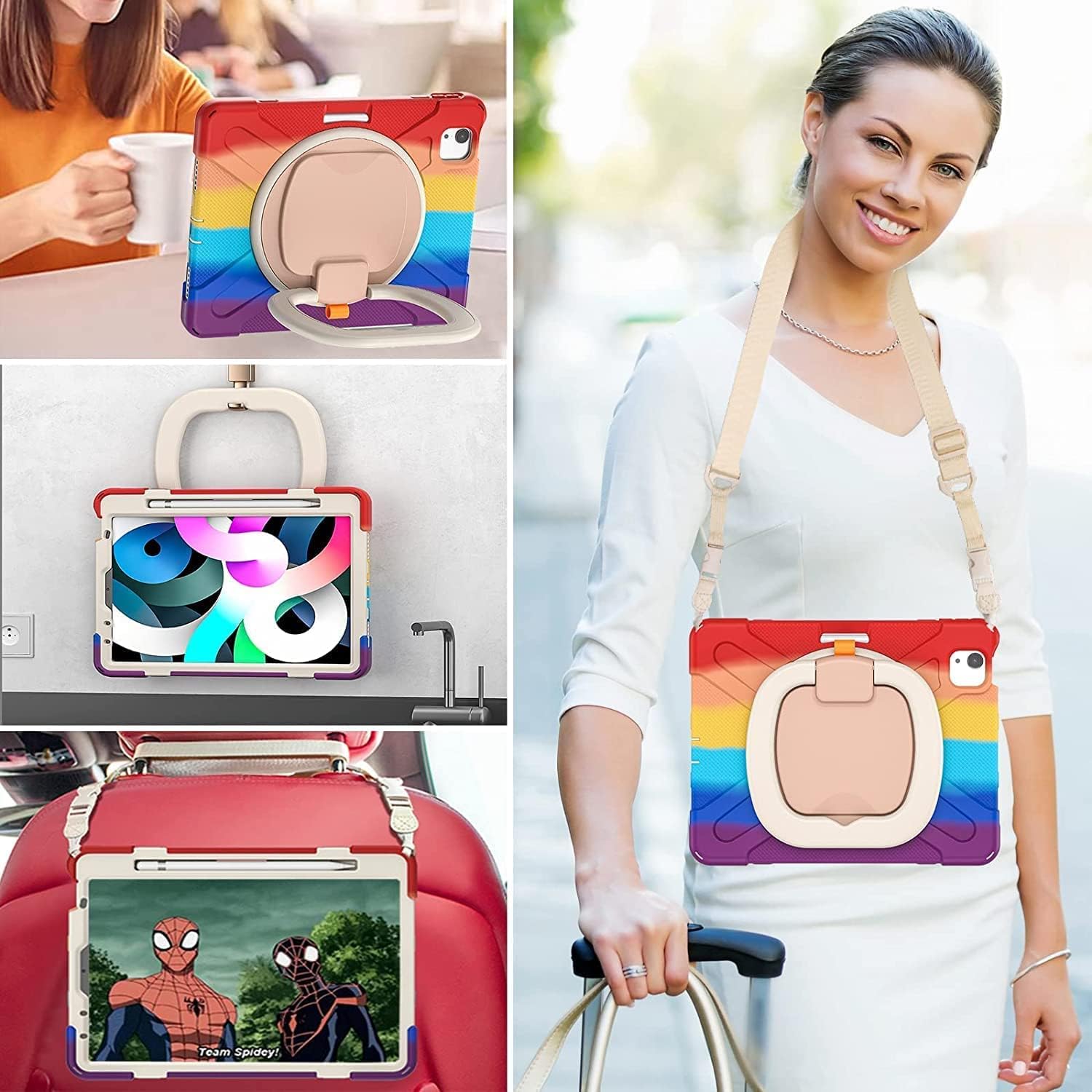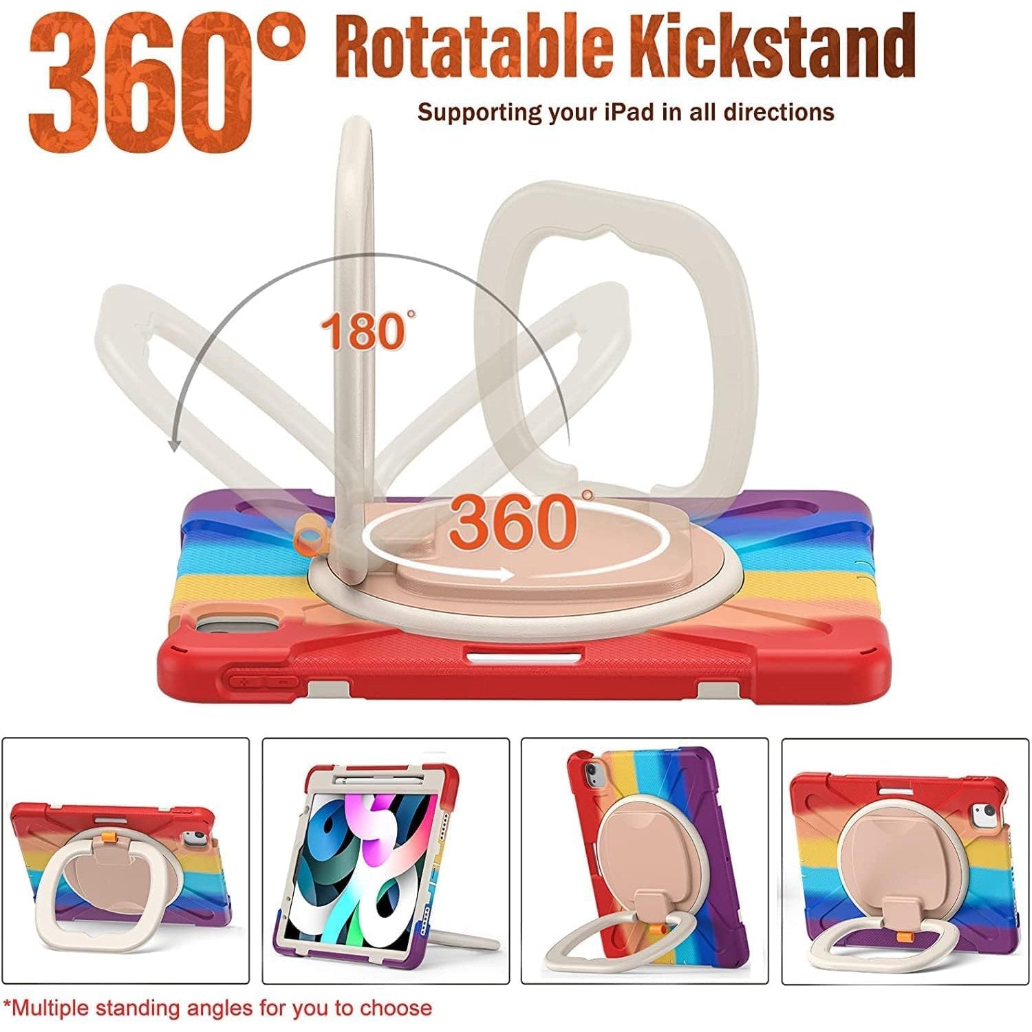 Husa reziztenta pentru iPad Air 10.9" (Gen. 5/4) si iPad Pro 11" (Gen. 1–4), Carcasa rezistenta 3-in-1, Suport 360°, Curea mana, Rosu multicolor