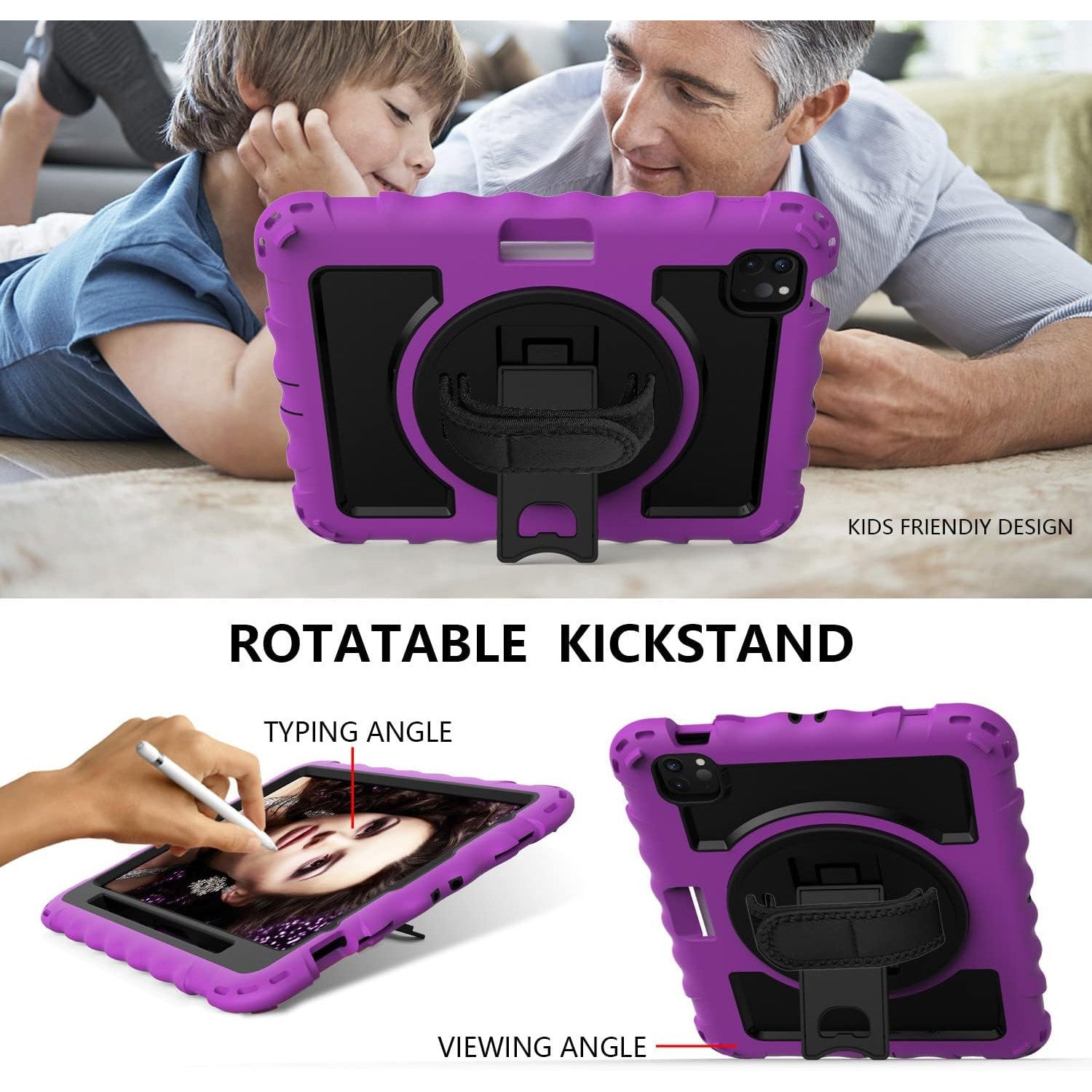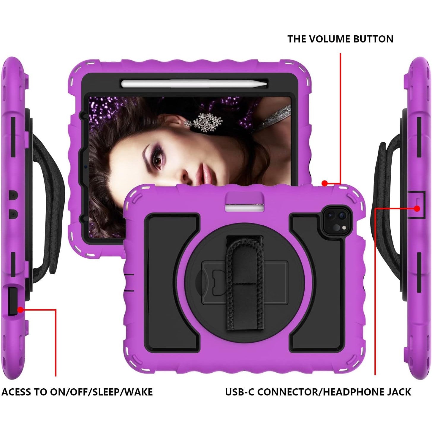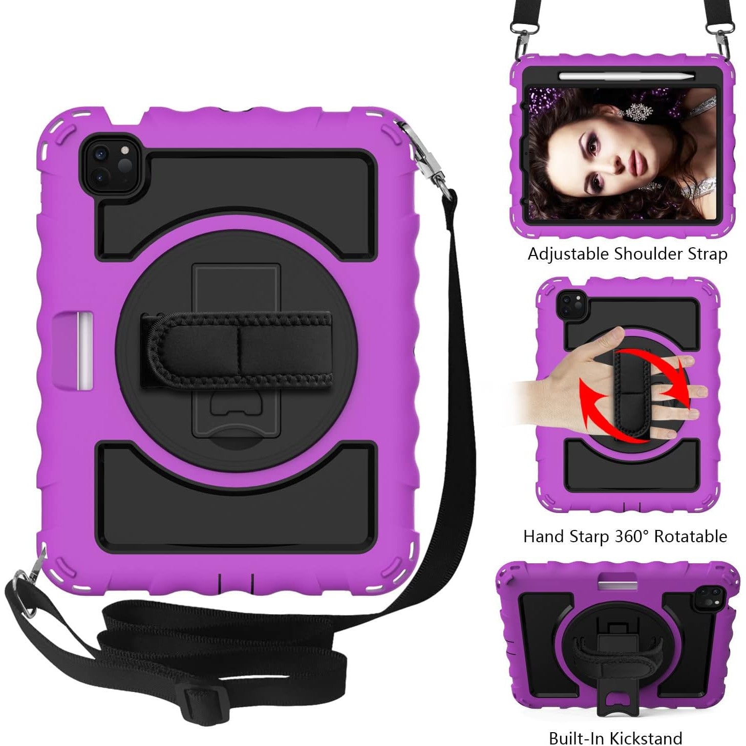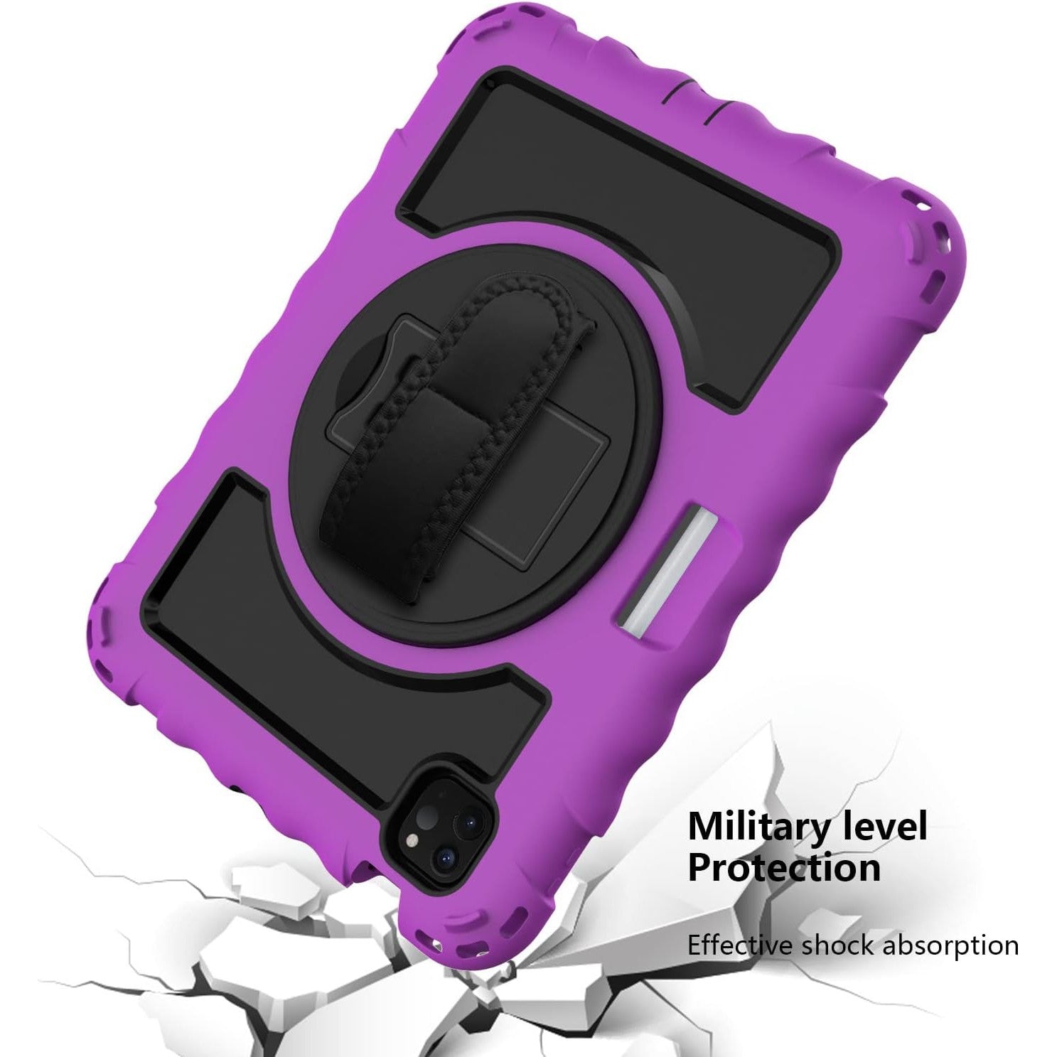 Husa Sigloo pentru iPad Air 10.9" (Gen. 5/4) si iPad Pro 11" (Gen. 1–4), Carcasa rezistenta 3-in-1, Stand, Curea de umar, Mov cu Negru