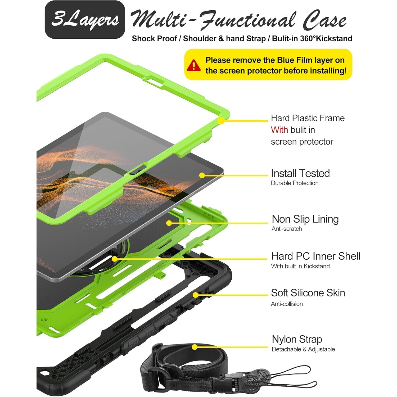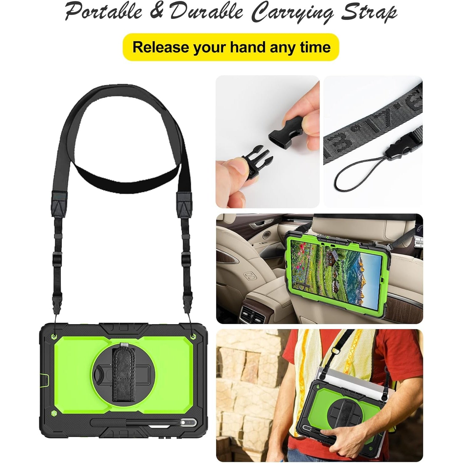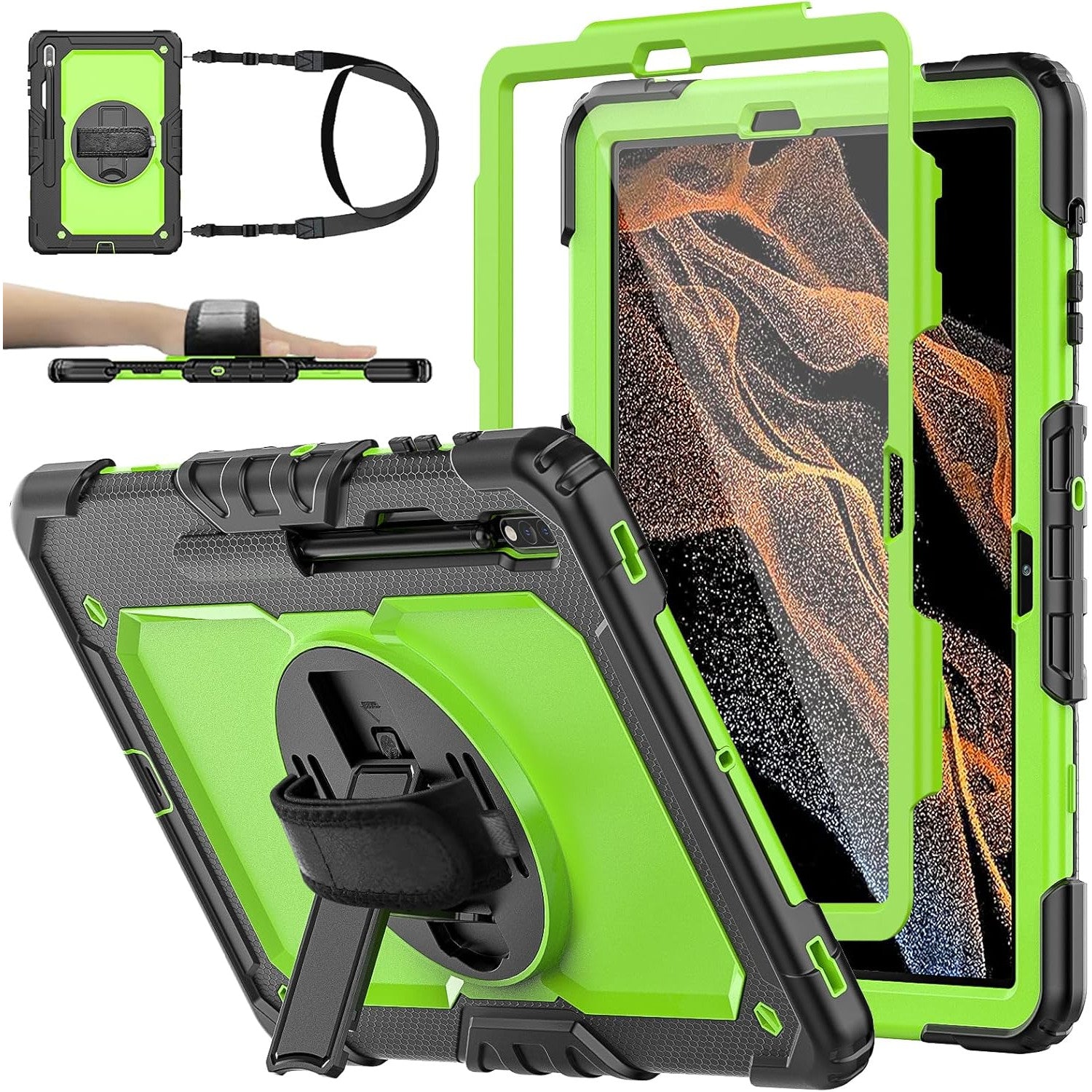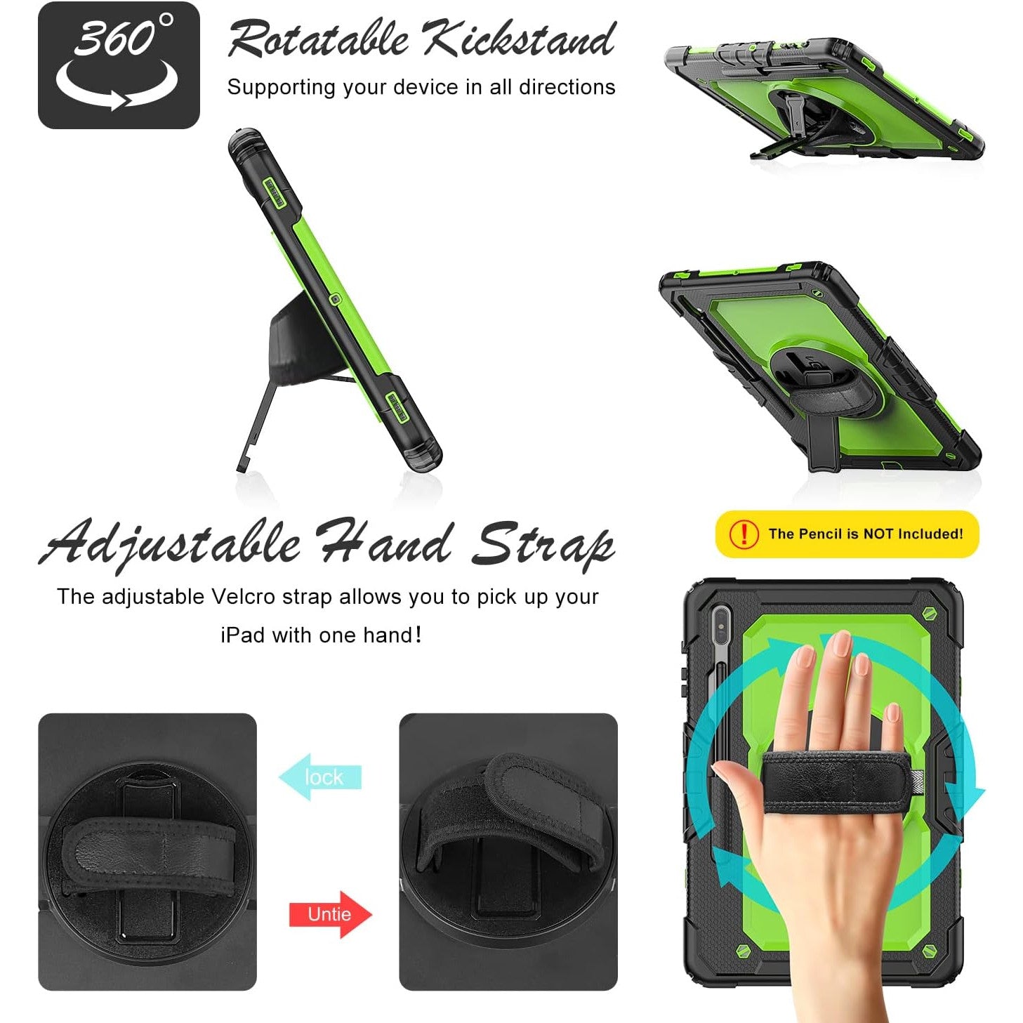 Husa Sigloo pentru tableta Samsung Galaxy Tab S8 Plus, S7 FE, S7 Plus, Rezistenta la Socuri, cu Suport Rotativ, Verde cu Negru
