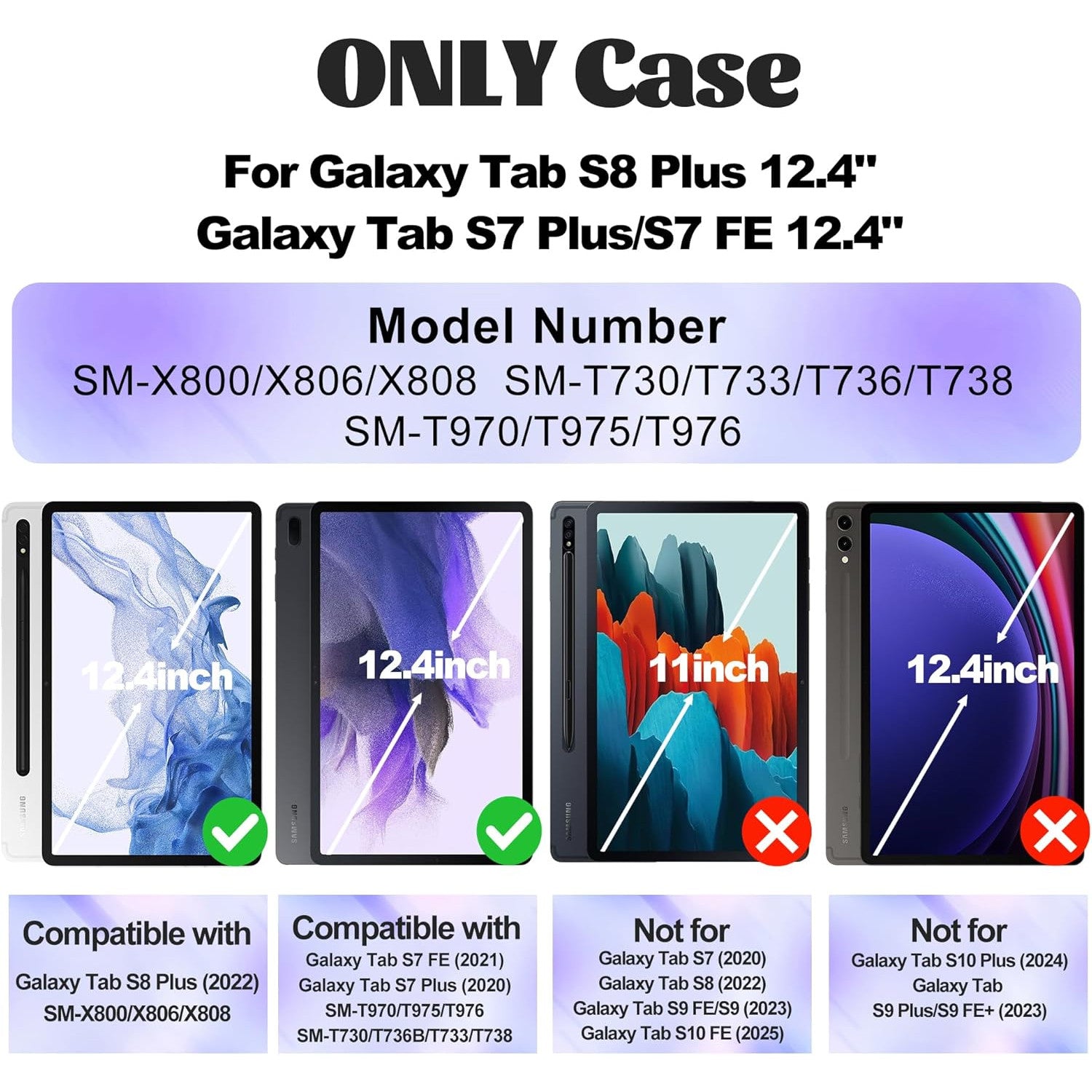 Compatibilitate extinsa: Husa este proiectata special pentru Samsung Galaxy Tab S8 Plus (12.4"), Tab S7 Plus (12.4") si Galaxy Tab S7 FE (12.4").