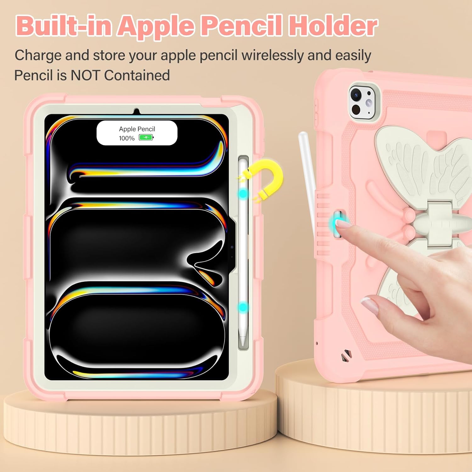 Husa premium Sigloo pentru Apple iPad Air 11, Air 5, Air 4, (11/10.9 Inch) – Protectie Completa, Suport Creion, Stand Fluture, Curea, Roz