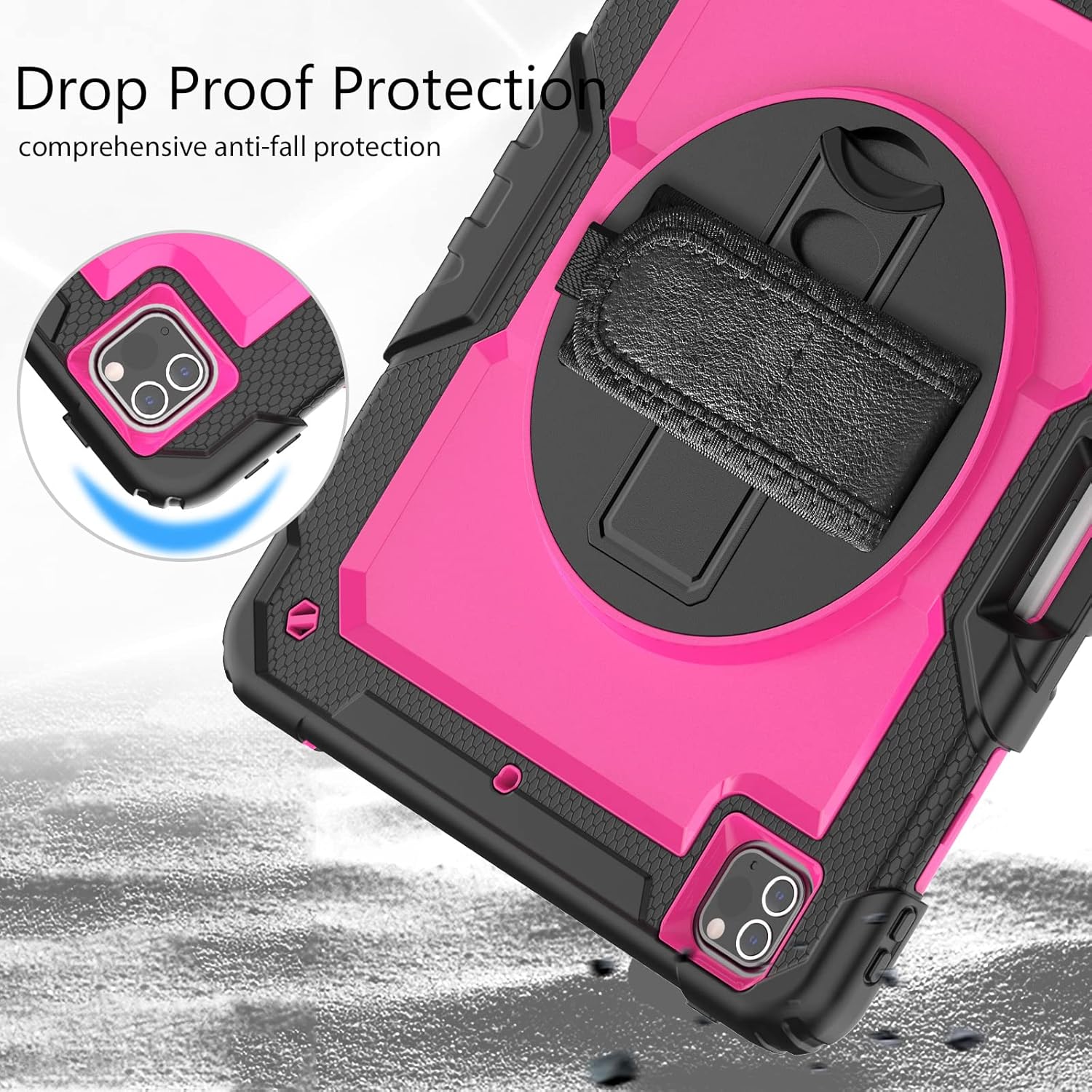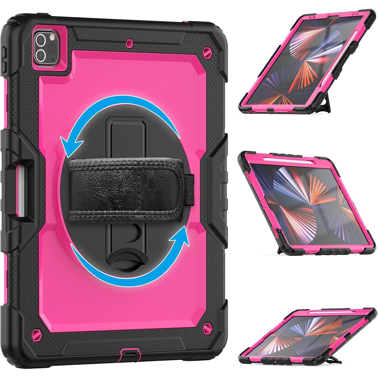 Pachet 360 pentru iPad Air13 (2024/2025), iPad Pro 12.9'' (2020/2021/2022), husa Sigloo cu folie inclusa, curea de umar si suport rotativ, Roz cu Negru