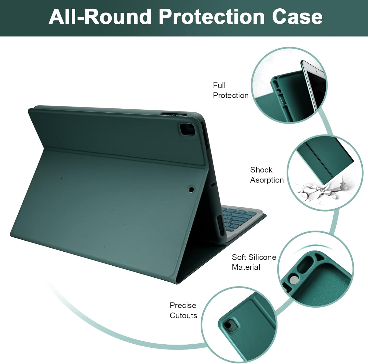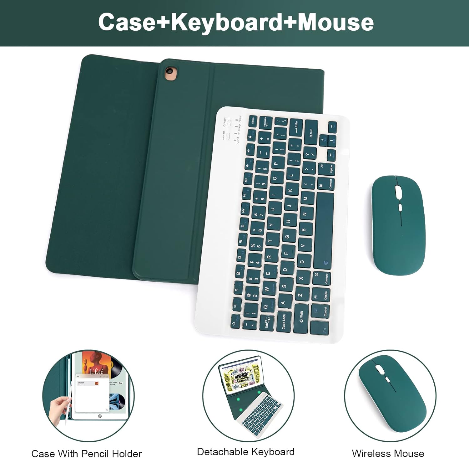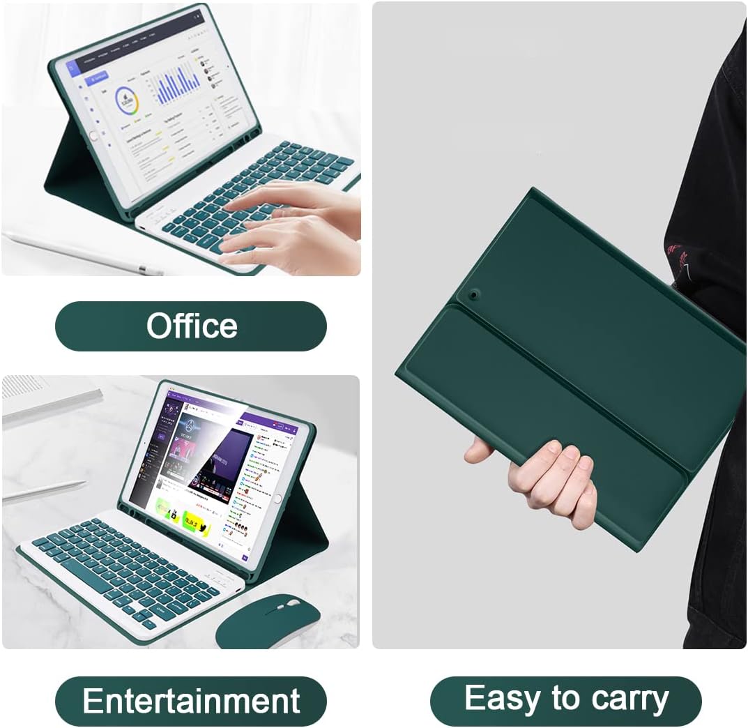 Husa cu tastatura si mouse pentru tableta Samsung Galaxy Tab S10 FE+, 13.1", Sigloo, Verde, Bluetooth, Magnetic, Protectie completa si stand ajustabil