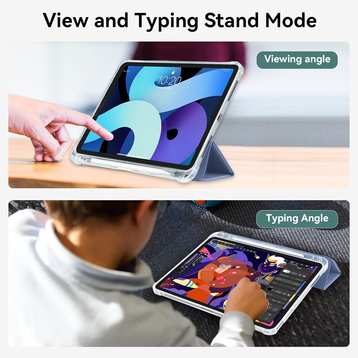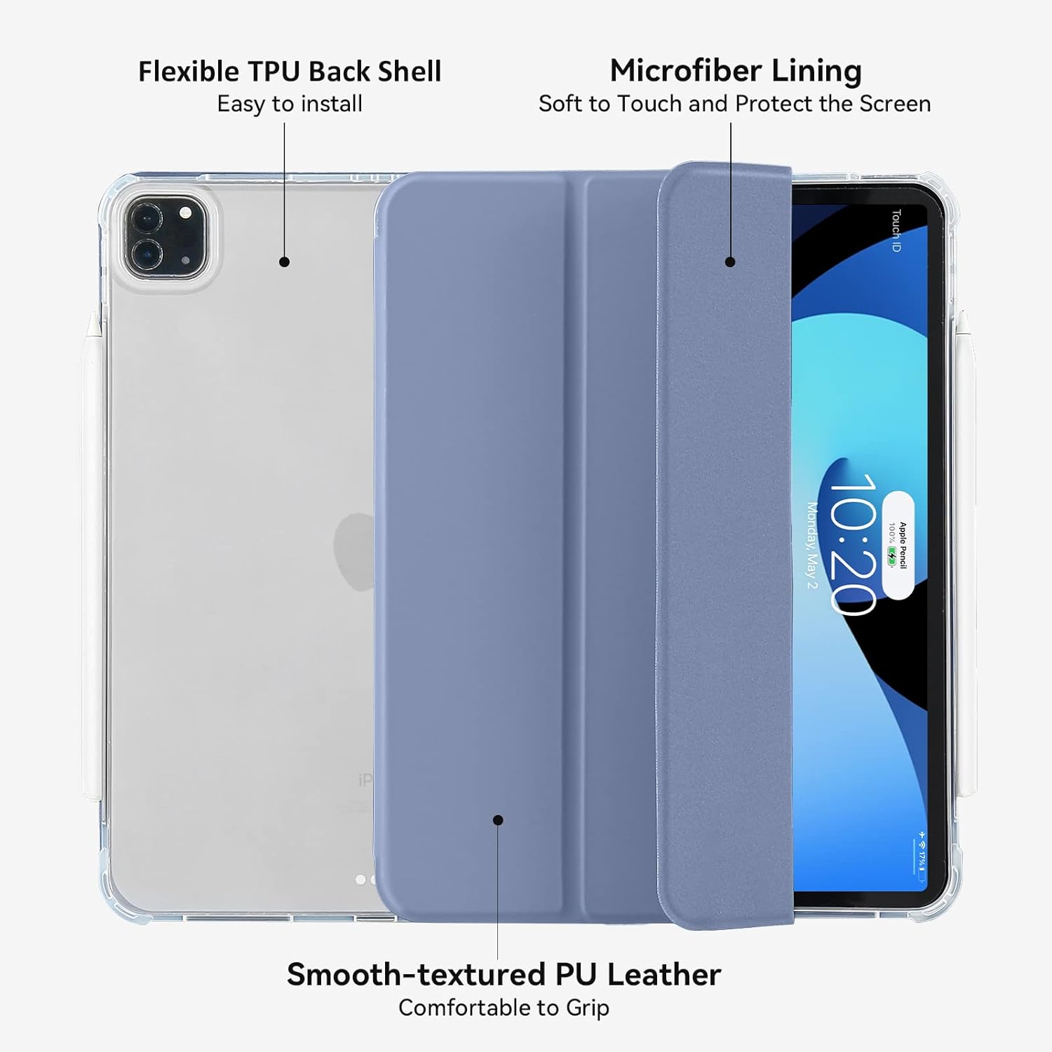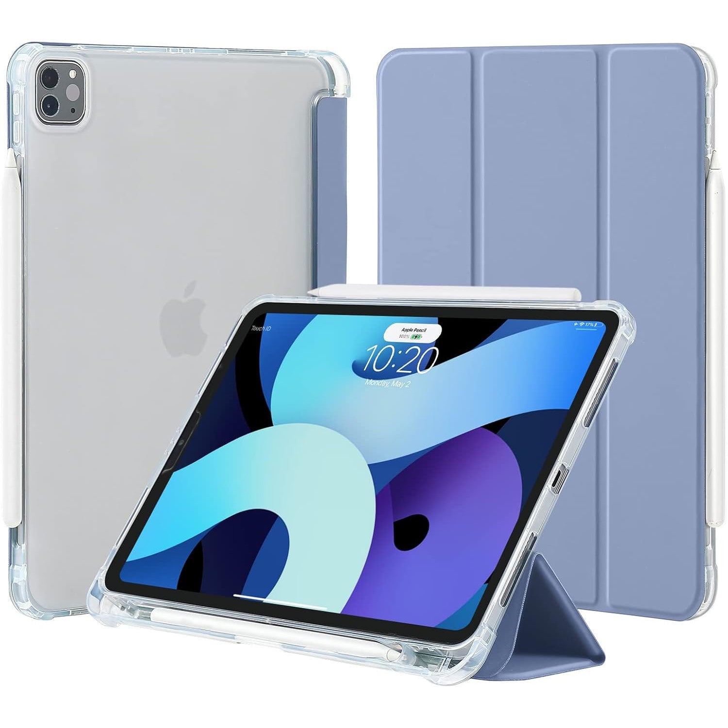 Husa premium tableta Apple iPad Air 11" (2024), Sigloo, interior imitatie piele, suport Smart Pen, spate din PC transparent, rezista la socuri, Gri albastrui