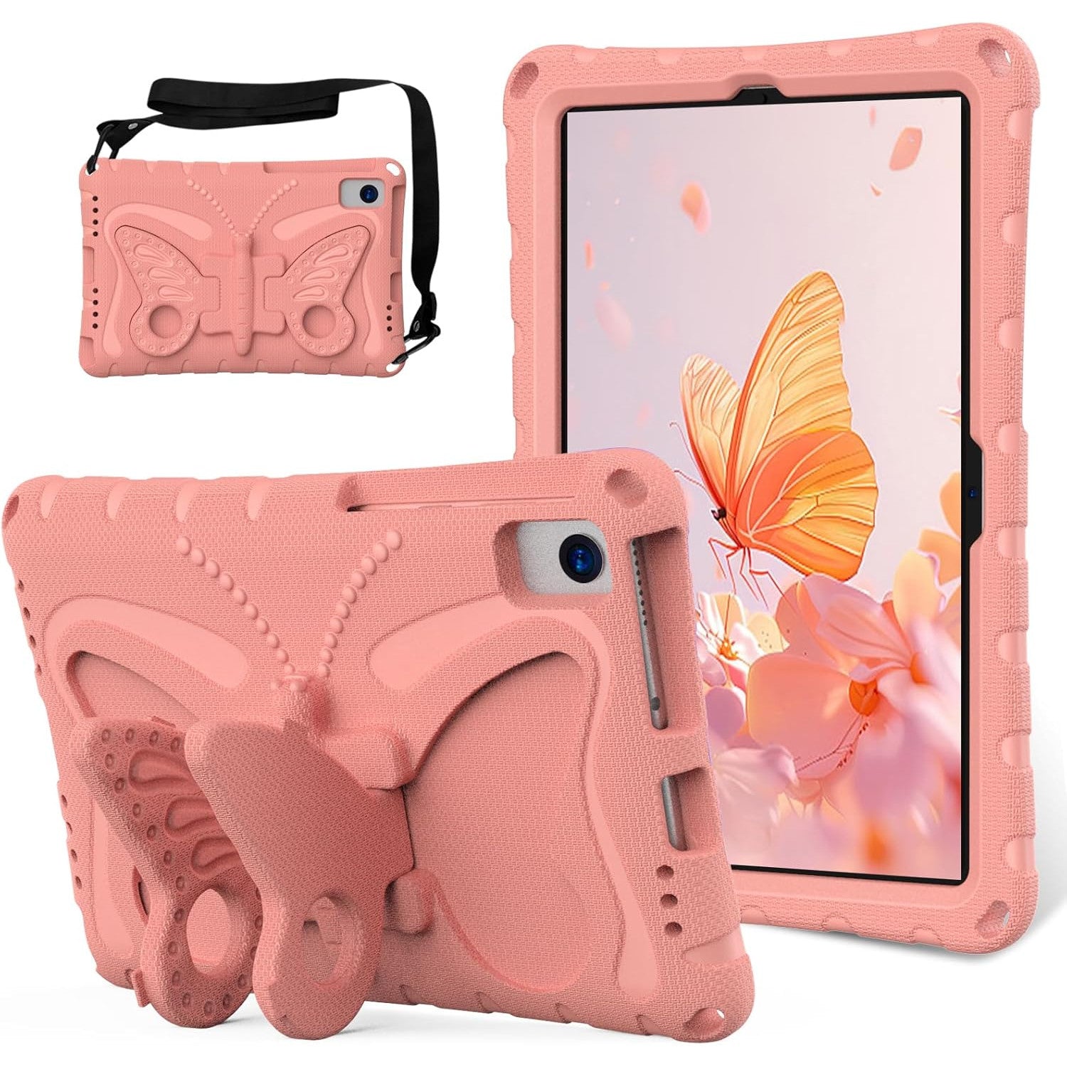 Husa Shockproof Armor pentru Samsung Galaxy Tab A8 (X200/X205), 10.5", Sigloo, stand Built-in, Protectie 360, Roz Fluture