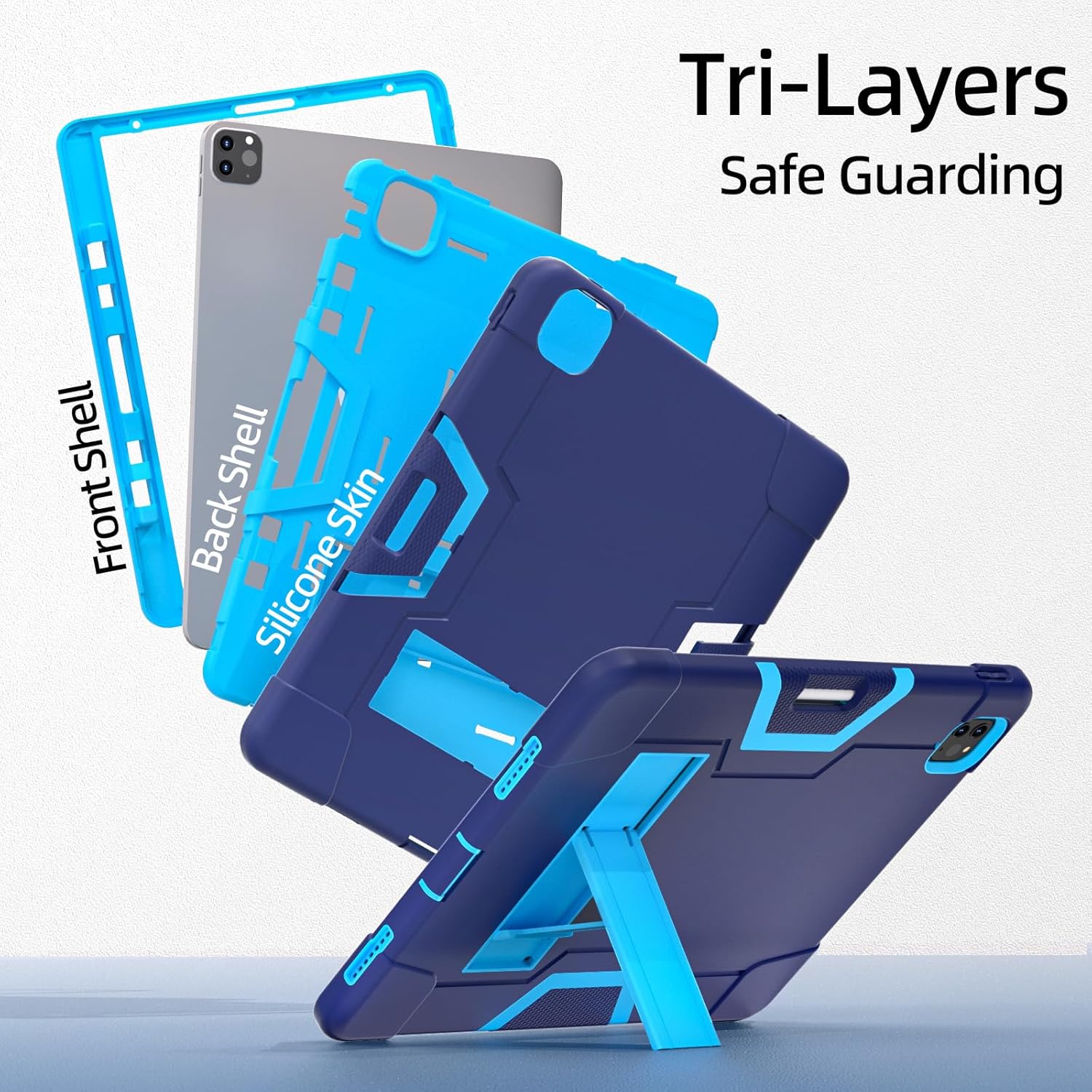Husa rezistenta pentru iPad Air 13" (2025/2024 M3/M2) si iPad Pro 12.9" – cu Suport Kickstand, Design Robust, Albastru Marin + Albastru