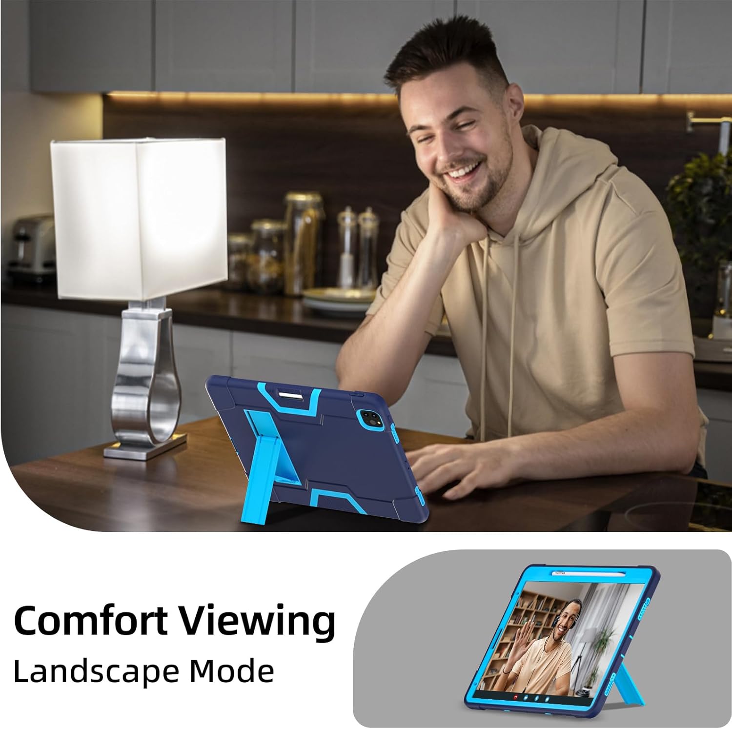 Husa Sigloo pentru iPad Air 13" (2025/2024 M3/M2) si iPad Pro 12.9" – cu Suport Kickstand, Design Robust, Albastru Marin + Albastru