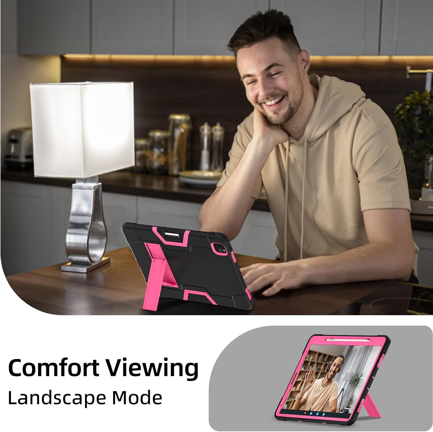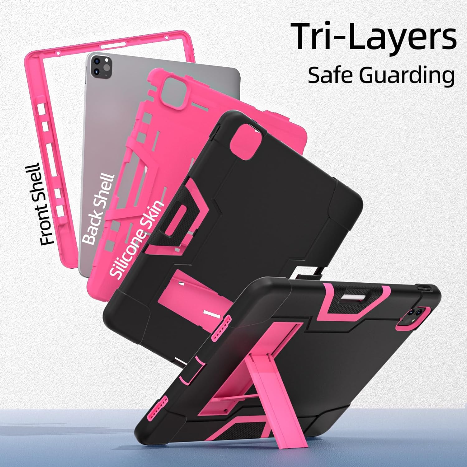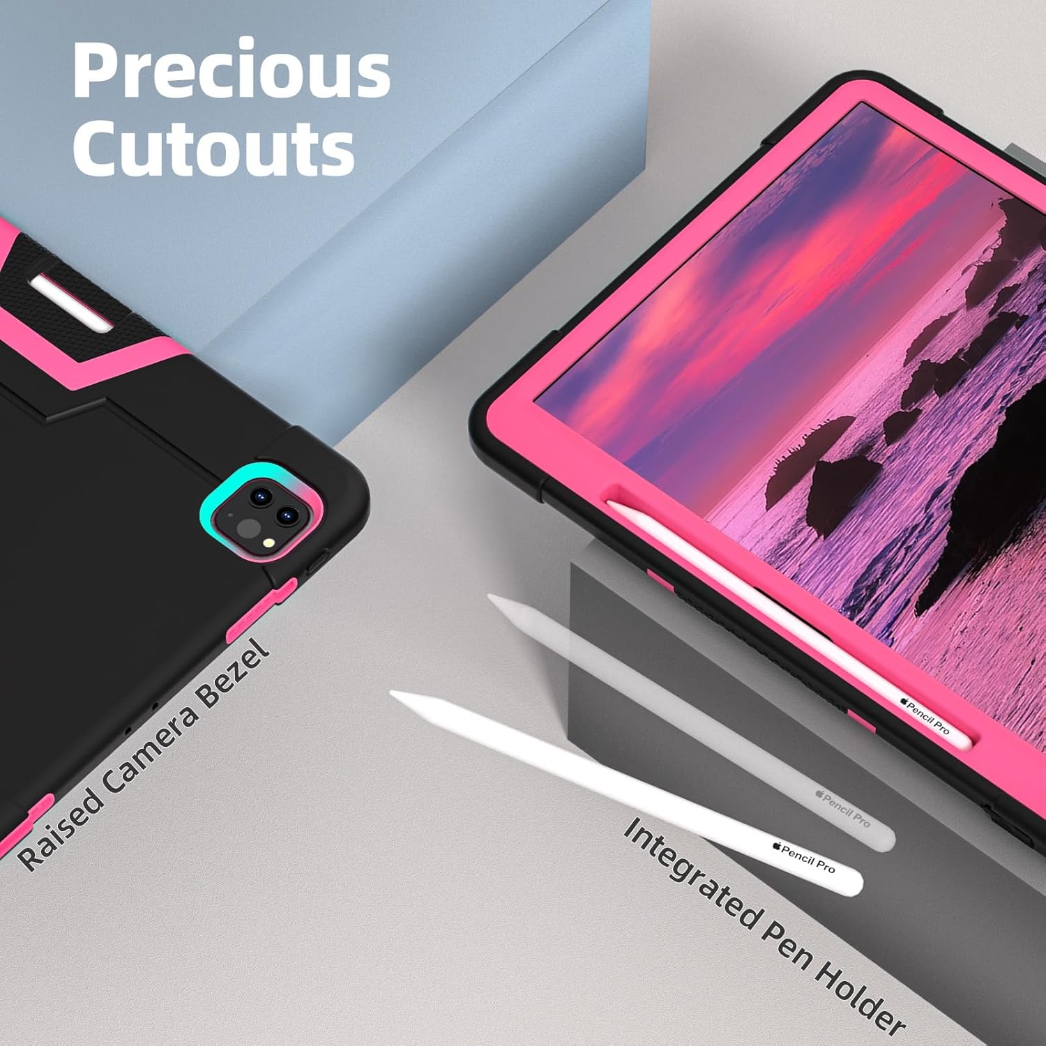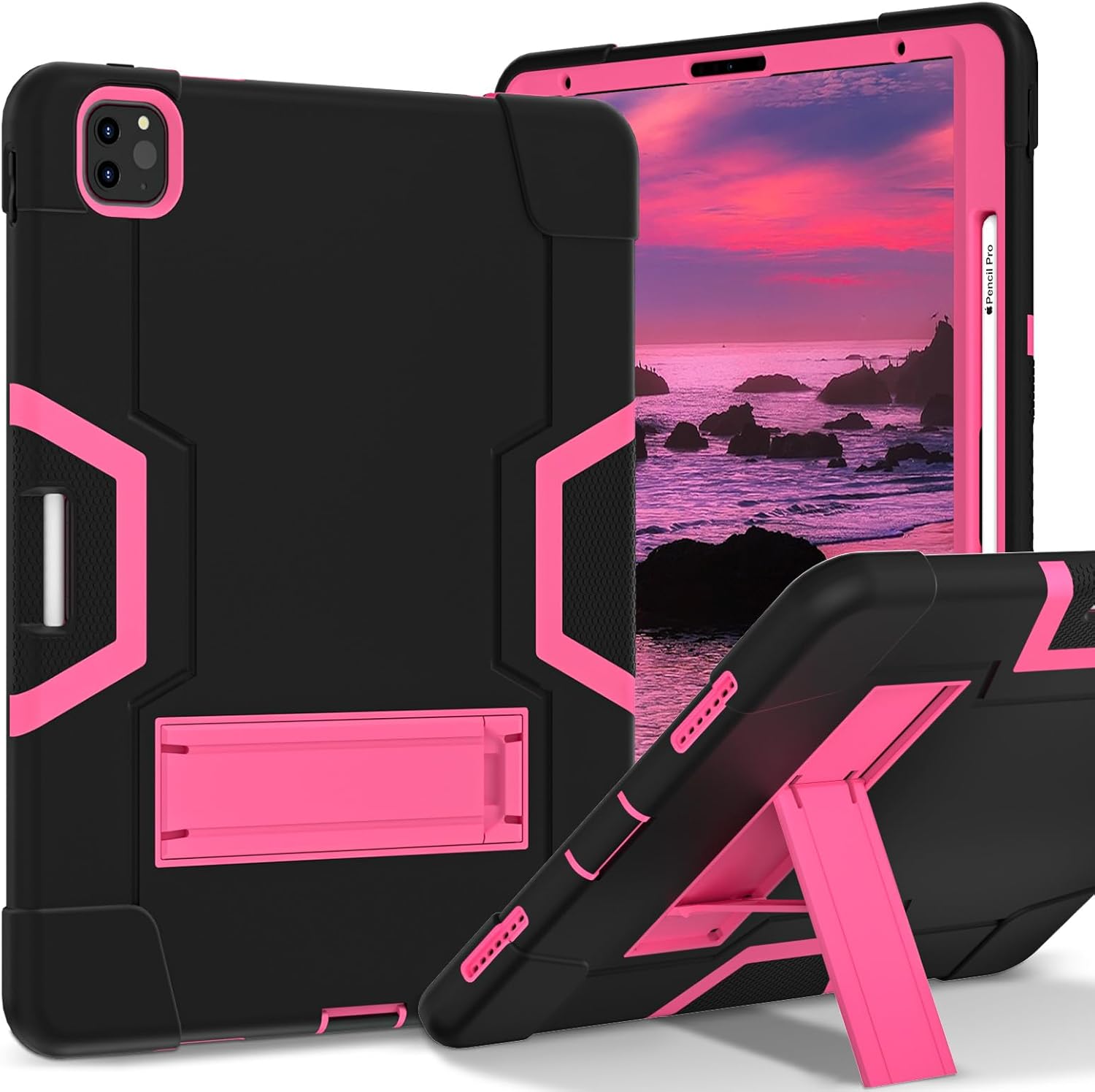 Husa rezistenta pentru iPad Air 13" (2025/2024 M3/M2) si iPad Pro 12.9" – cu Suport Kickstand, Design Robust, Negru + Roz