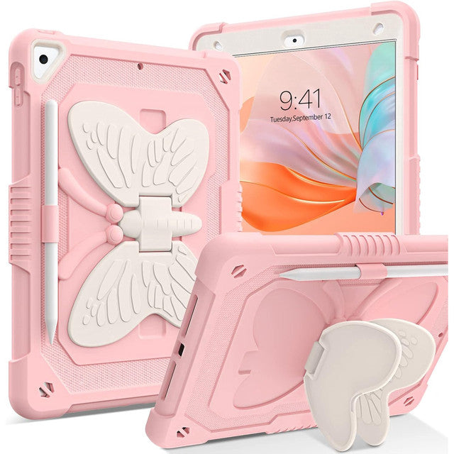 Husa Sigloo, pentru tableta Apple iPad 9th Gen (2021), iPad 8th Gen (2020), iPad 7th Gen (2019) - Protectie completa, stand fluture si curea de umar, suport pentru Pen, roz