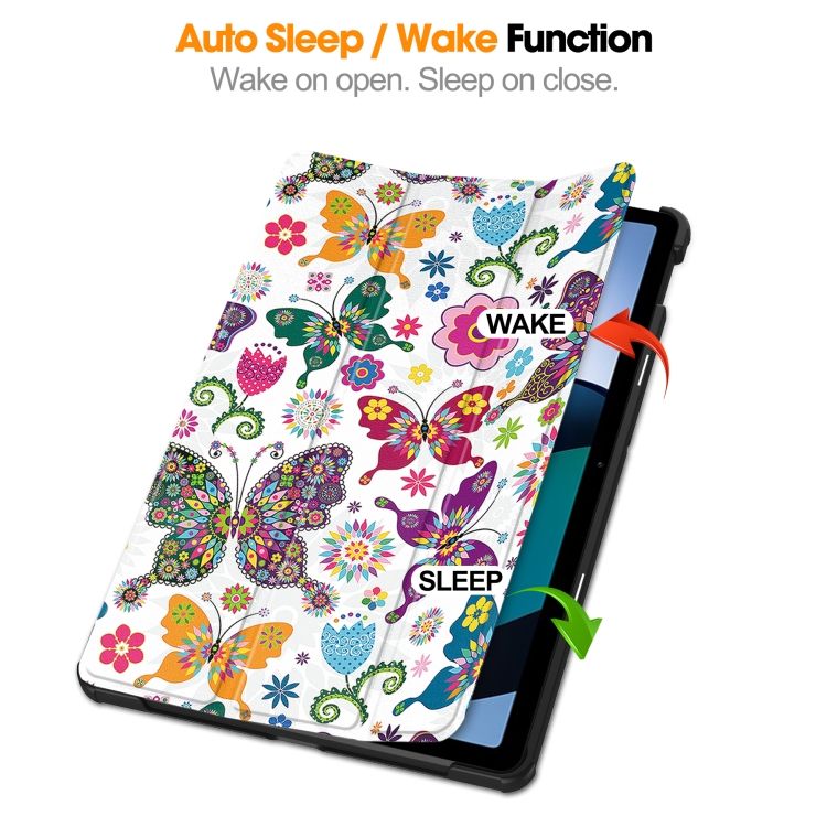 Husa Sigloo pentru tableta Xiaomi RedMi Pad SE 11" (2023) – Slim, Tri-Fold Magnetic, Piele Ecologica, Suport Stand, Antisoc – model Butterflies