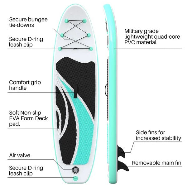 Bucura-te de aventuri pe apa cu placa de stand-up paddle (SUP) de inalta calitate, conceputa pentru a oferi stabilitate si performanta superioara. Aceasta placa premium vine echipata cu 3 aripioare pentru o manevrabilitate excelenta, o pompa eficienta, un rucsac spatios, o aripioara detasabila si un kit complet de reparatii. Perfecta pentru lacuri, rauri, plaje si vaslit recreational, aceasta placa transforma fiecare iesire pe apa intr-o experienta memorabila. Placuta de punte din EVA, moale si antiderapanta, asigura confort si stabilitate optima in timpul folosirii.